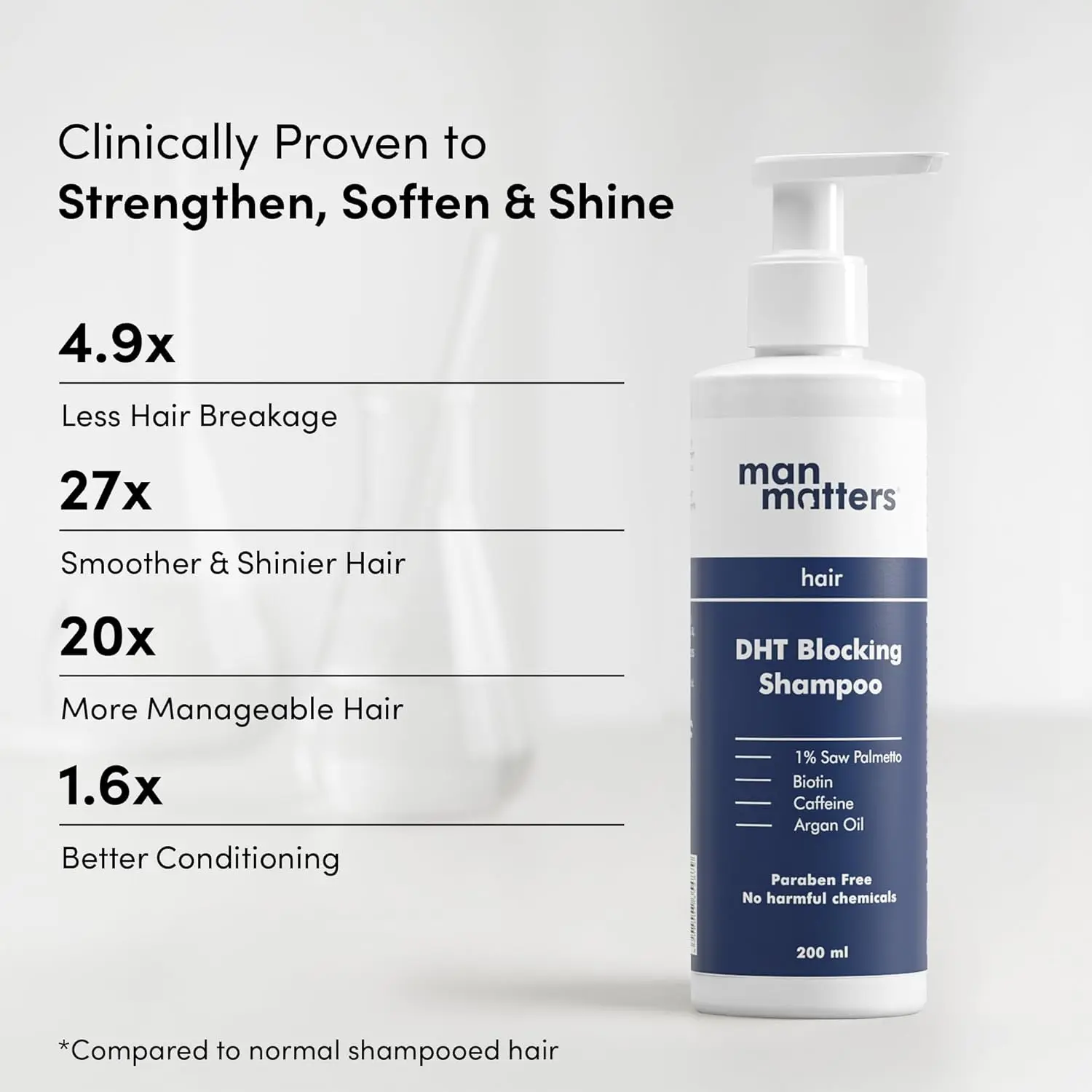 Man Matters combines science-backed ingredients with targeted solutions for menโs grooming needs. This DHT-blocking shampoo is ideal for those looking to fight hair fall at its root cause and restore confidence with stronger, healthier hair.